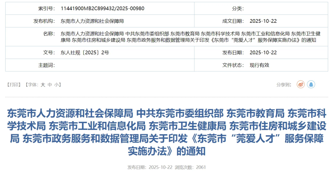 而东莞的人才政策也持续加码。就在前不久,东莞八部门联合发布《东莞市“莞爱人才”服务保障实施办法》,明确对各类人才提供购房补贴、生活补贴、新引进补贴等,其中购房补贴最高可达500万元或生活补贴最高200万元,实现“安居+医疗+教育+政务”全方位保障。