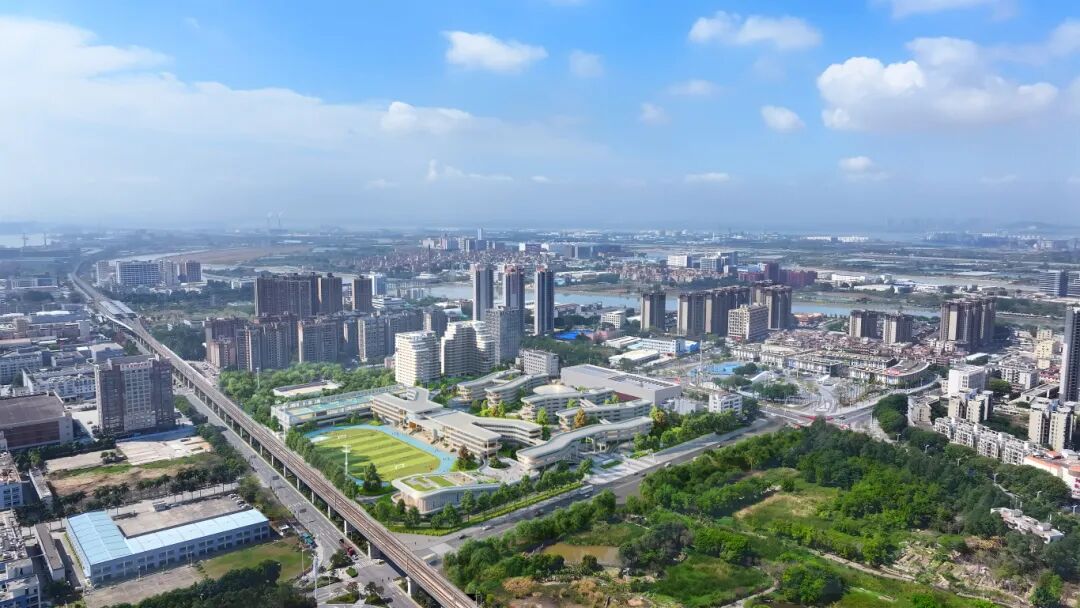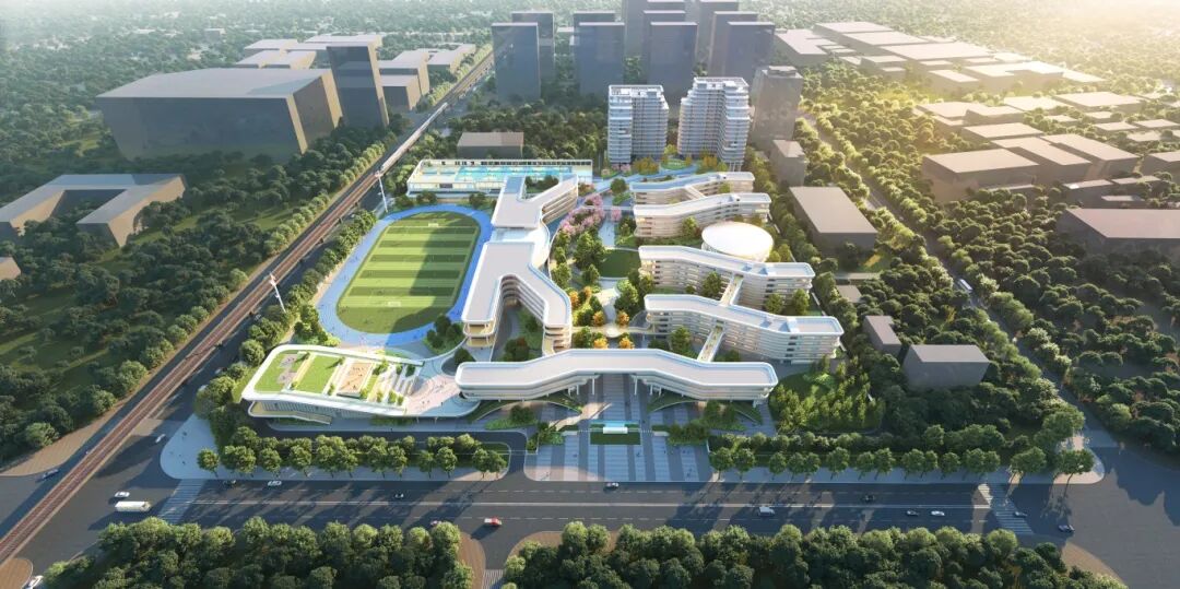 作为东莞市重点打造的教育示范项目,东莞水乡未来学校选址于洪梅镇东莞中学洪梅学校旧址及周边地块,占地161.3亩,计划招生3960人。在设计上以“未来港湾”为理念,建筑如溪流般蜿蜒,如泊船停靠码头,充分体现水乡特色。校园内规划了85平方米/间的双走廊教室、贯通全校的风雨连廊,以及独栋艺术楼、体育馆、恒温泳池、STEAM科创中心等高标准设施。