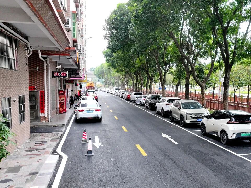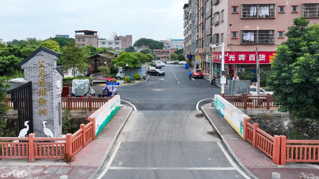 大厚旧村属人口居住密集区,而项目改造约70%的工程量又是路面黑化,环境复杂性是项目建设中的最大挑战。为了减少施工对居民生活的影响,项目创新采用“参建方+村委会”联动机制,施工方遇问题即时反馈,村委会第一时间调解,确保噪音控制、交通疏导等细节到位。李驰介绍:“我们实施错峰施工,避免干扰居民作息;村委会组织座谈会收集意见,所有问题48小时内解决。”这种高效协作,使项目全程无投诉、无安全事故,展现了谢岗基层治理的韧性。