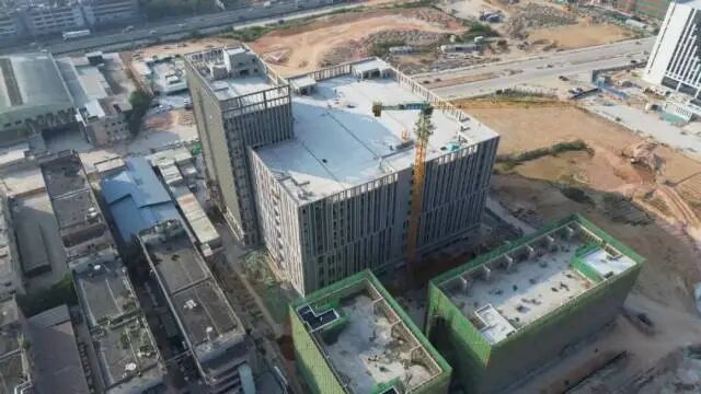 东莞水乡未来学校建设现场近800名建设者全力奋战,部分楼栋已率先封顶,力争春节前实现全部建筑主体结构封顶,2026年8月交付、9月开学。