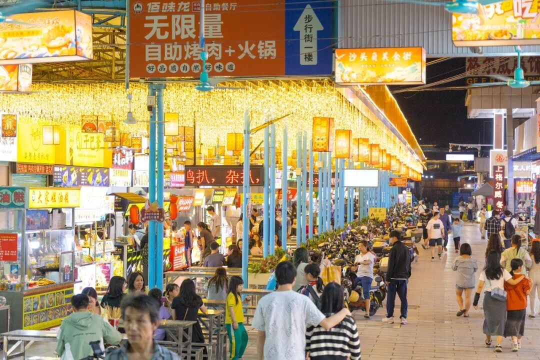 商圈是激活消费的“主阵地”,也是新维村打造特色经济的“试验田”。新维村党委以党建为纽带,引入“活动引流+品牌招引+IP赋能”的创新模式,重点打造沙头角商圈。党员干部化身“招商员”“服务员”,主动对接商户、策划活动,成功塑造“叶师傅”村IP,打造独具风味的美食街。“石龙镇618电商节互联网营销师大赛”等精彩活动在新维村轮番上演,直播电商等新业态在此落地生根,让商圈客流量较改造前提升超40%。如今的沙头角商圈,白天人流如织,夜晚灯火璀璨,昔日消费日渐疲软的商圈摇身一变成为远近闻名的“网红消费地”。