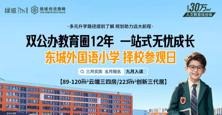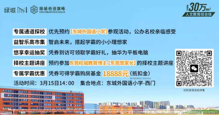 报名参加,别忘记在本推文末发送留言“我要报名参加3月15日外国语小学实地参观活动,本周六不见不散!双公办名校,3月购房、5月报名、9月入读。绿城桂语旗峰,1月城区网签第一名,值得一看!”