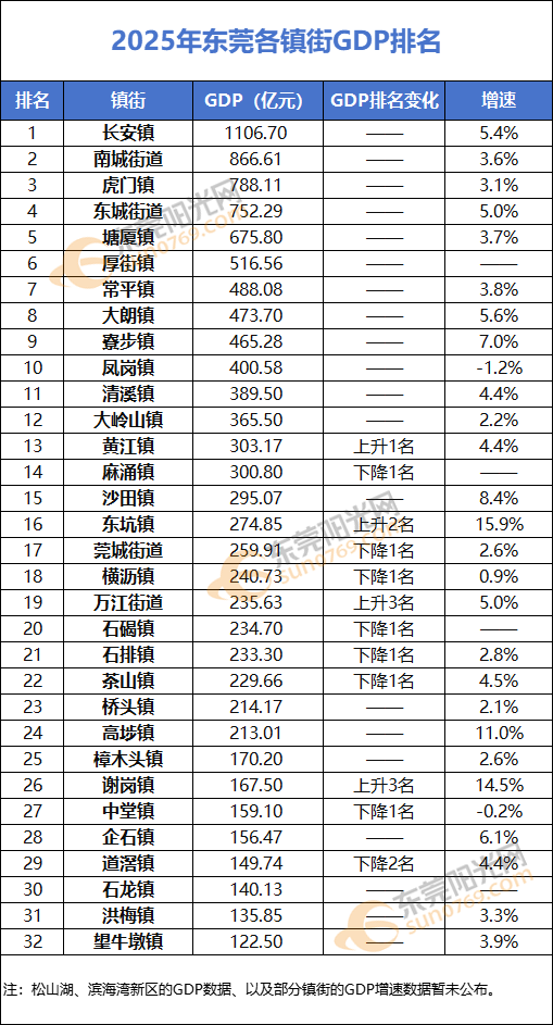 当前,东莞32个镇街2025年的GDP数据出炉,快来看看你所在镇街表现如何?