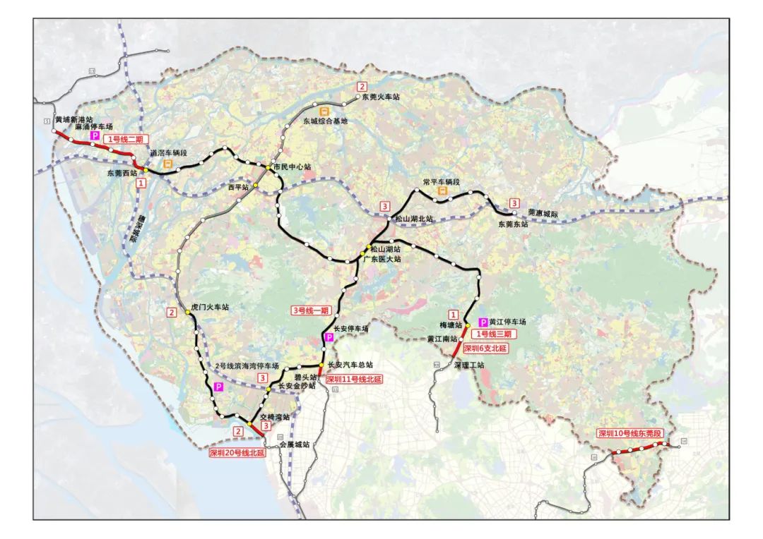 2.东莞1号线三期:起自梅塘站,止于黄江南站,增强松山湖科学城与深圳光明科学城的联系。