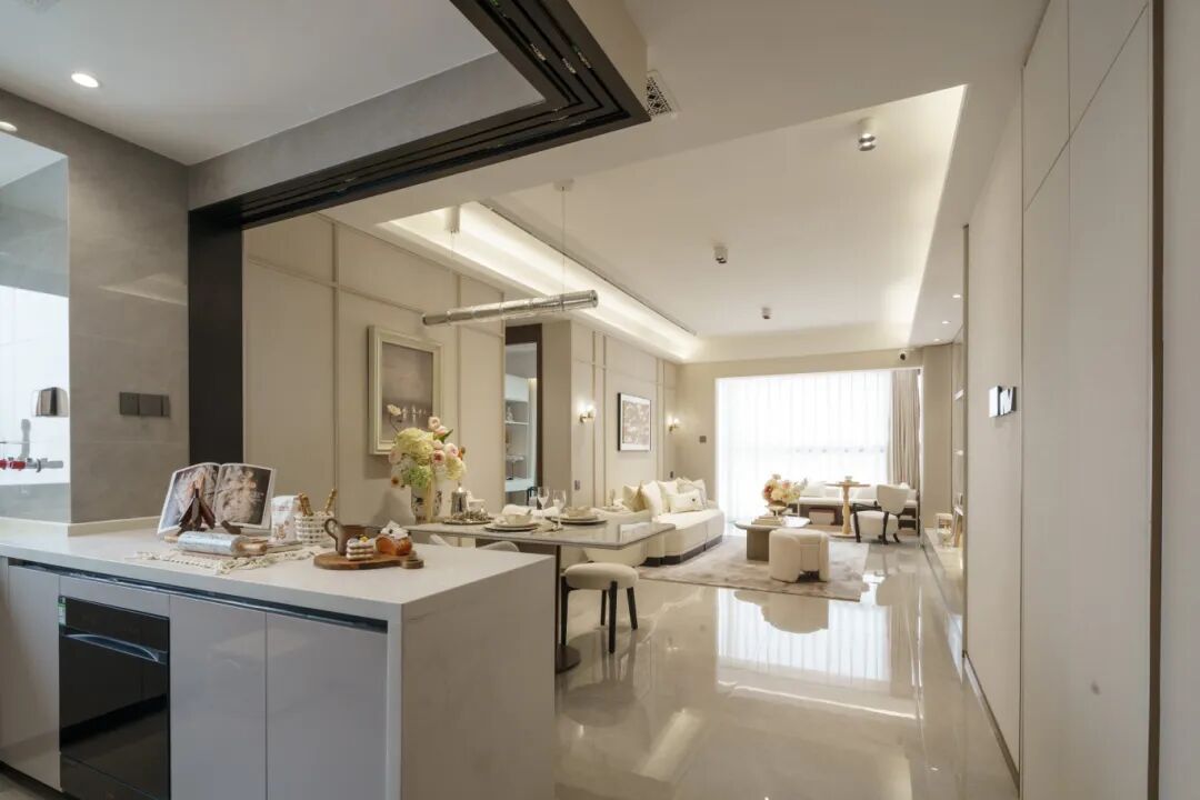客户如今更青睐设计新颖、空间利用率高的住宅产品。以过去130平方米的户型为例,由于公摊面积较大,实际使用面积往往仅有一百零几平方米。而像九樾上城这类符合新规的楼盘,则通过赠送更多阳台与飘窗面积,整体使用面积甚至超过建筑面积,实用率突破100%。在同等建筑面积下,这类新产品能为业主额外赠送约15至20平方米的实际使用空间,同时配备中央空调、厨房三件套等全屋精装修,实现了更优质的居住体验。”郑小姐表示。