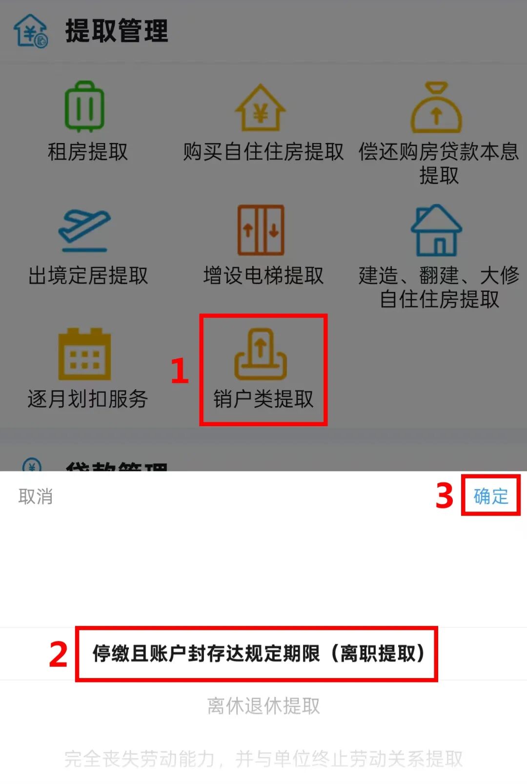 2.在主页点击“提取管理-销户类提取-停缴且账户封存达规定期限(离职提取)”并确定。
