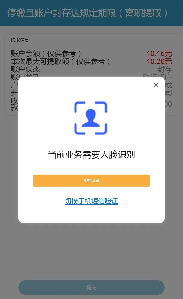 5.最后,完成人脸识别认证即可。提取申请会在T+3个工作日内完成审批,并以短信形式告知申请人。