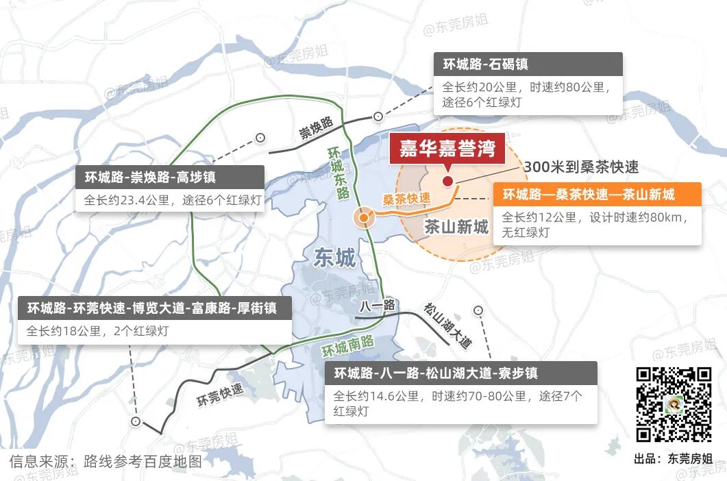 在区位上,嘉华嘉誉湾距桑茶快线出入口约300米,地处茶山新城的成熟区域,是茶山与东城融城生活圈的中心。在交通上,通过轨道交通2号线,该项目3站到东城万达,5站到南城CBD;通过桑茶快线,只需8分钟即达主城区。通过石大路,开车25分钟就可以到达松山湖,生态休闲生活轻松享受。东莞站更是与广深城际轻轨无缝接驳,连接广州和深圳两大一线城市,打造了一个立体的粤港澳大湾区交通网络。