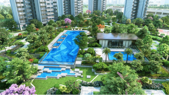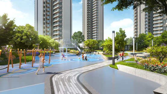 约1千米环形跑道、长约50米的中央泳池、儿童乐园、康体乐园、大草坪......均已全部落地,一家老少都能于园林中发掘出更多的乐趣。