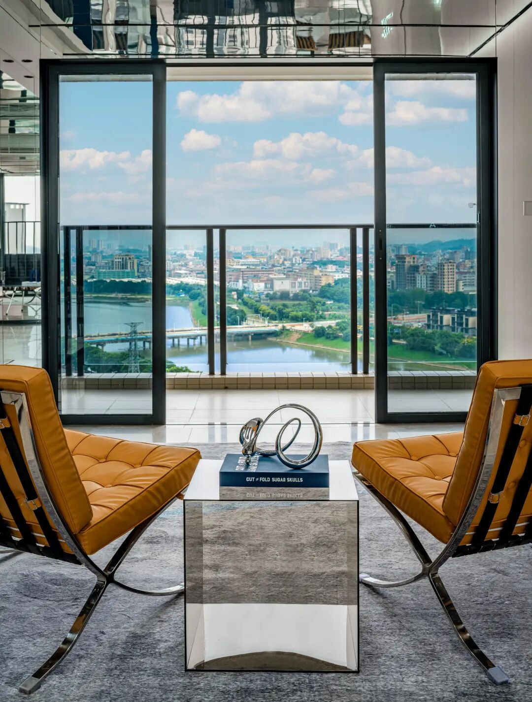 该项目楼栋以围合式布局,大部分产品做到了南向看江,彼此错开设计,既让江景视野互不遮挡,同时把园景收于眼底。