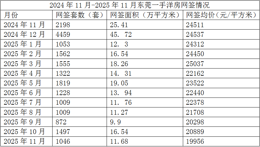 市住建局数据显示,2025年11月,东莞一手洋房网签均价为19956元/平方米,环比下降4%。