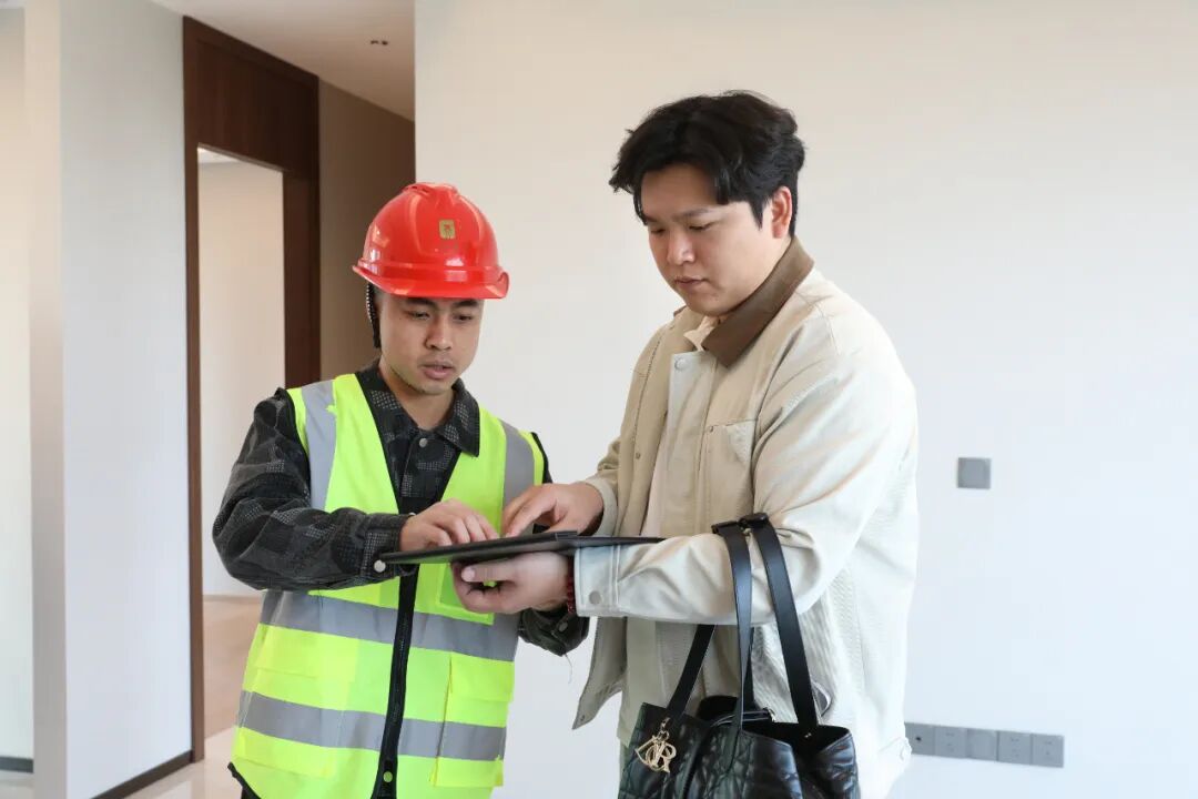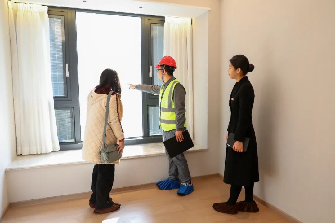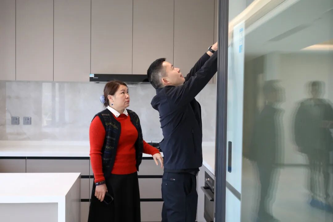 本次活动的最大亮点,是业主们查验的并非样板间,而是自己即将入住的真实房屋。在镇住建局工作人员及企业工程团队的陪同下,业主们对房屋展开了细致入微的“体检”——从墙面、地面的观感质量,到厨卫防渗漏细节,再到门窗、插座、卫浴家电的安装精度等。