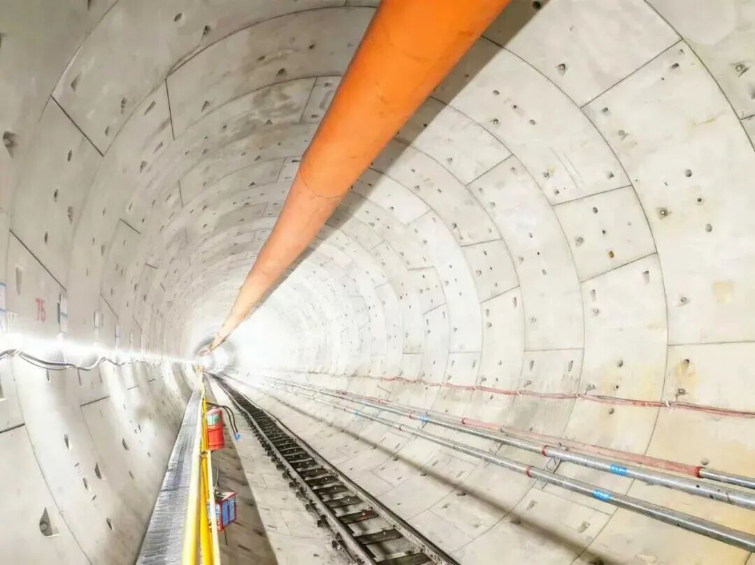 区间采用了φ9140mm土压平衡盾构机掘进作业,隧道衬砌选用了通用环管片,管片外径8.8米、内径8米、环宽1.8米,各项参数均严格契合设计标准。掘进过程中,盾构机先后精准下穿平湖火车站、广深铁路四线等关键风险点,全程安全可控、质量过硬。