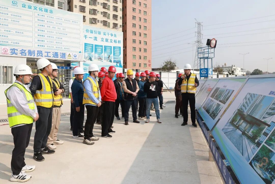 在项目入口的参观平台,代建项目负责人及施工单位项目总工程师结合总平面图、效果图与现场实景,系统介绍了小区的整体布局、户型设计、配套规划及当前建设进展,让村民们对家园的“根基”有了直观的认识。当前,路东安置小区已完成支护与桩基工程,地下室底板浇筑已完成60%,地下室结构正全面有序推进中。
