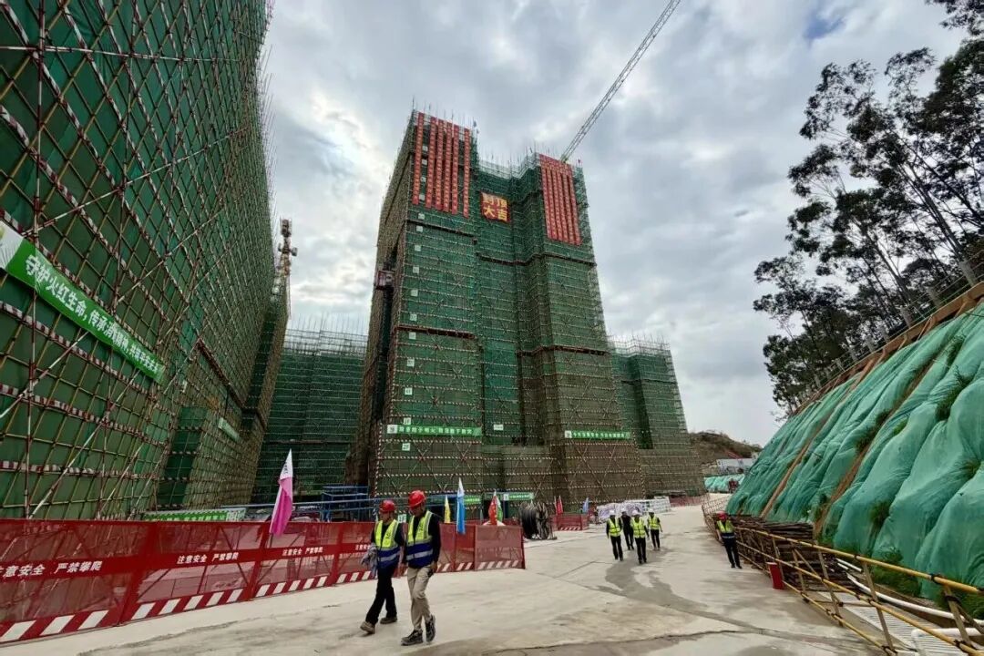 自2025年3月3日正式动工以来,在各参建方的协同联动、同向发力下,项目团队严格落实挂图作战、节点清零要求,克服地质复杂、雨季施工等挑战,不到一年时间顺利完成2层地下室施工,并实现首栋17层楼封顶。