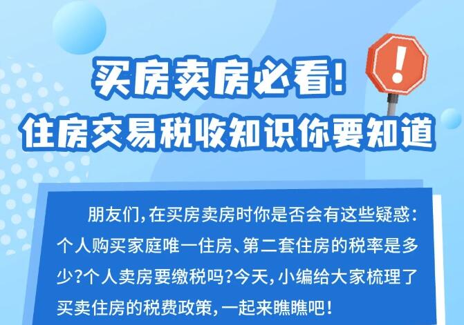 买房卖房必看!住房交易税收知识你要知道
